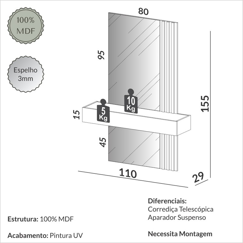 A compra do produto não acompanha montagem/desmontagem. Objetos decorativos não acompanham o produto. As cores dos objetos podem sofrer alterações devido à luminosidade, configurações do monitor e até mesmo a percepção do usuário. Imagens meramente ilustrativas.