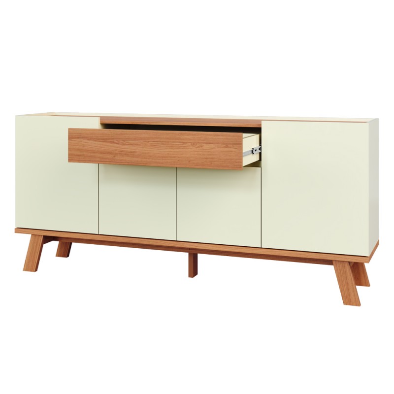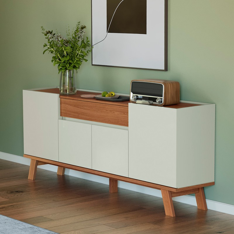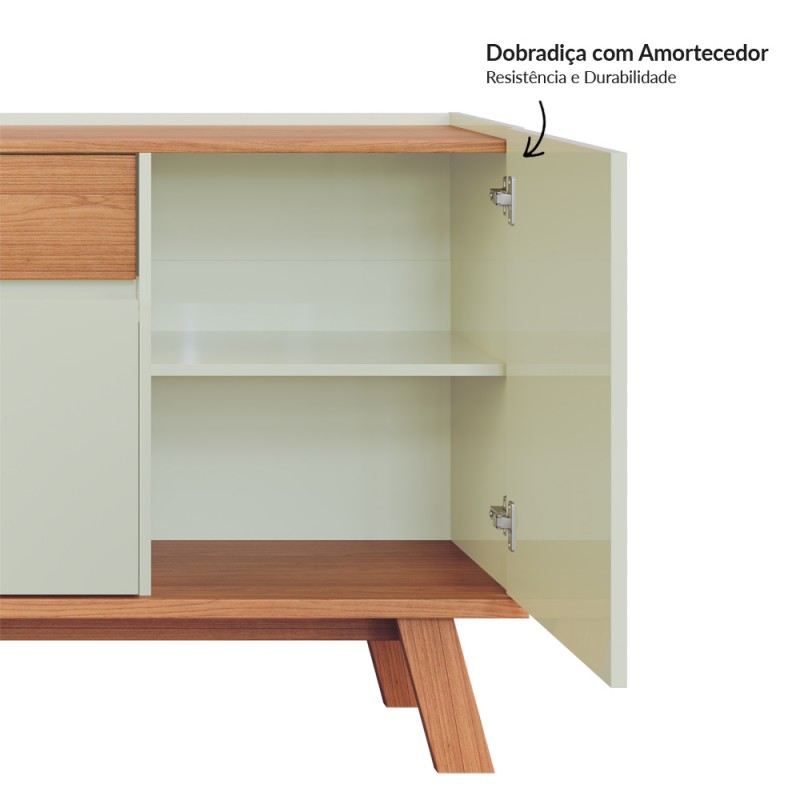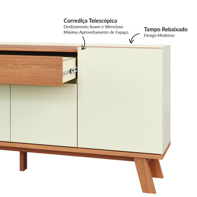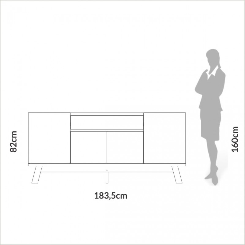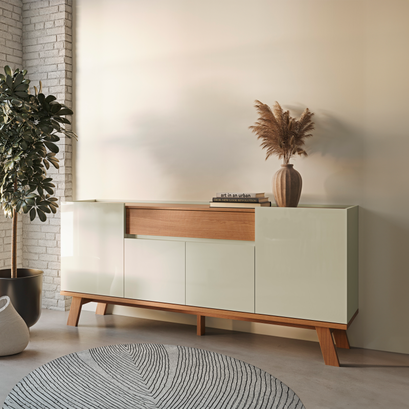 Com design minimalista e atemporal, o Balcão Buffet Lisboa possui 4 portas que dão acesso a amplos espaços de armazenamento.