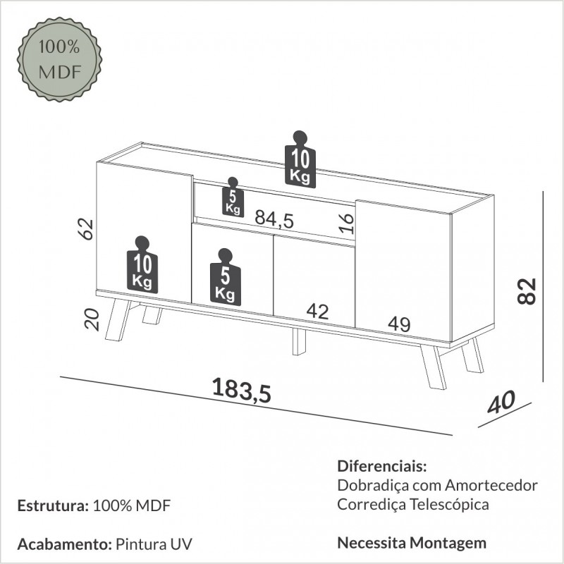 Esse produto 100% MDF possui 4 portas, pateleiras internas e 1 gaveta com corrediças telescópicas. Espaçoso e versátil, esse balcão tem design nórdico e delicado. Com pintura de 6 camadas de proteção, a alta qualidade do acabamento faz com que esse produto da Dalla Costa se destaque em qualquer espaço.