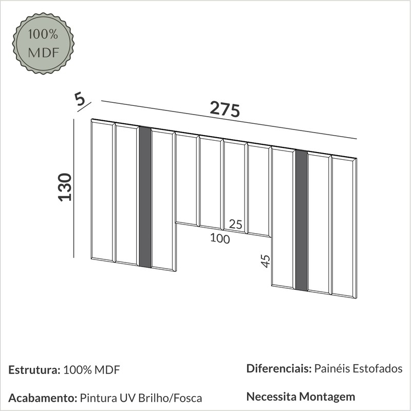 Formas suaves, toque macio e matérias primas de alta qualidade, fazem com que esse produto seja um acessório confortável, bonito e durável para a sua cama. O TW195 conta com espumas D23, que isolam sua cama da parede nas noites frias e úmidas de inverno. As molduras em MDF permitem recortes para a instalação de interruptores e tomadas. Seu design é atemporal e esbanja modernidade e aconchego em qualquer dormitório.