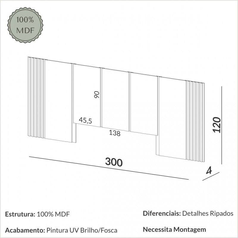 Ripados milimetricamente pensados e matérias primas de alta qualidade, fazem com que esse produto seja um acessório bonito e durável para a sua cama. Este produto conta com um corpo 100% MDF, que proporciona um isolamento nas noites frias e úmidas de inverno. Seu design é atemporal e esbanja modernidade e aconchego em qualquer dormitório.