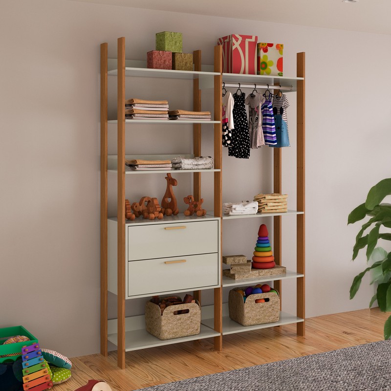 Closet 2 Torres 2 Gavetas Industrial Off White/Freijó - Dalla Costa