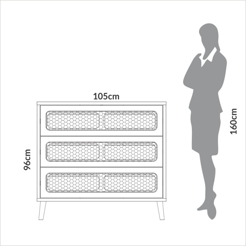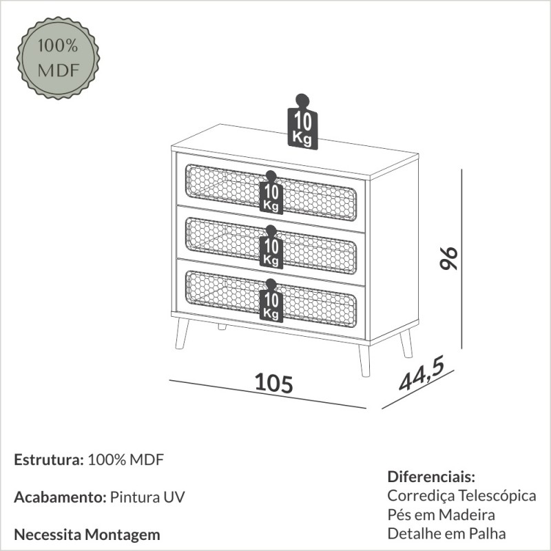 Cômoda 105cm 3 Gavetas com Palha Freijó - Dalla Costa