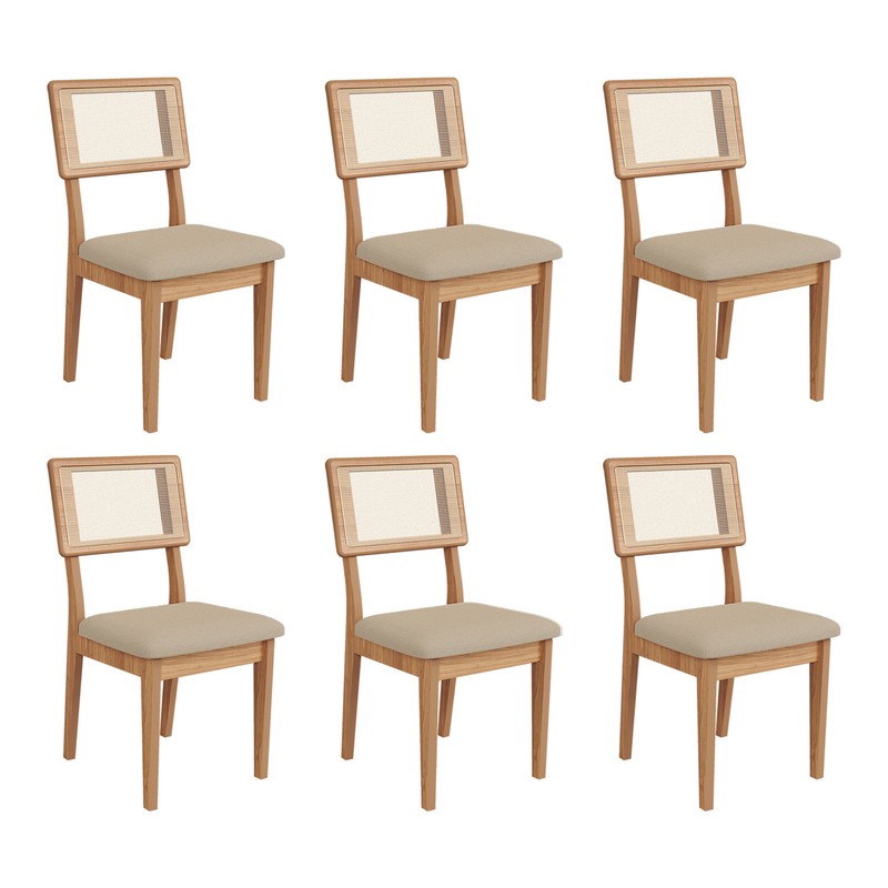 Conjunto Sala de Jantar Mesa Nature Off White/Freijó com 6 Cadeiras Palha Sintética Ca35 Césare Escuro