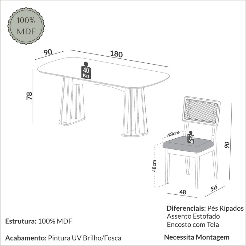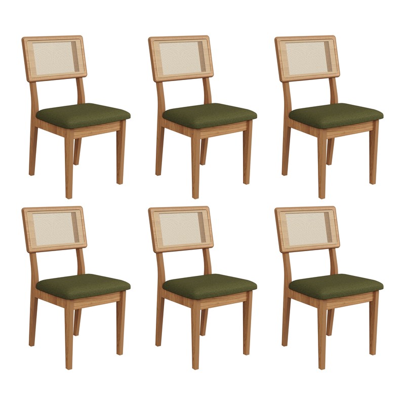 Conjunto Sala de Jantar Mesa Nature Off White/Freijó com 6 Cadeiras Palha Sintética Ca35 Verde