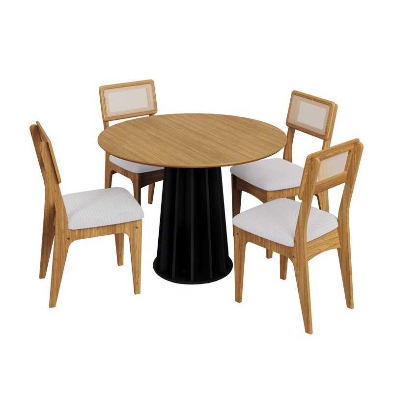 Conjunto Sala de Jantar Mesa Redonda Nature com 4 Cadeiras Tela Sintética Freijó/Perto Fosco/Césare Claro