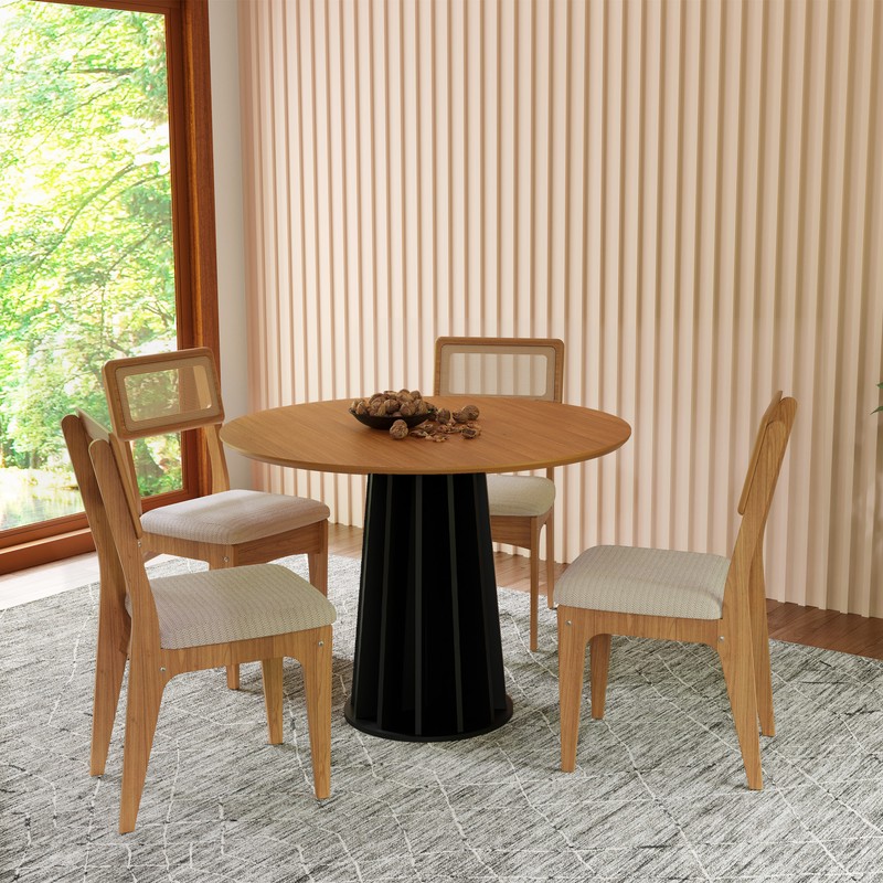 O conjunto acompanha 1 Mesa de Jantar Redonda Nature TM71 e 4 Cadeiras com Encosto em Palha Sintética CA39 Dalla Costa. A compra do produto não acompanha montagem/desmontagem. Objetos decorativos não acompanham o produto. As cores dos objetos podem sofrer alterações devido à luminosidade, configurações do monitor e até mesmo a percepção do usuário. Imagens meramente ilustrativas.