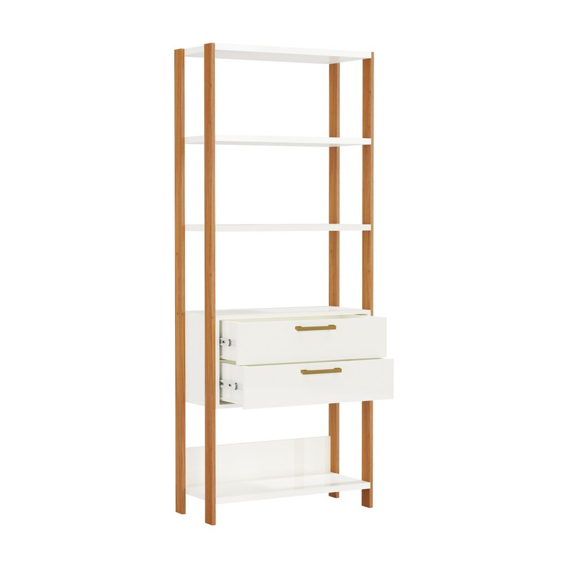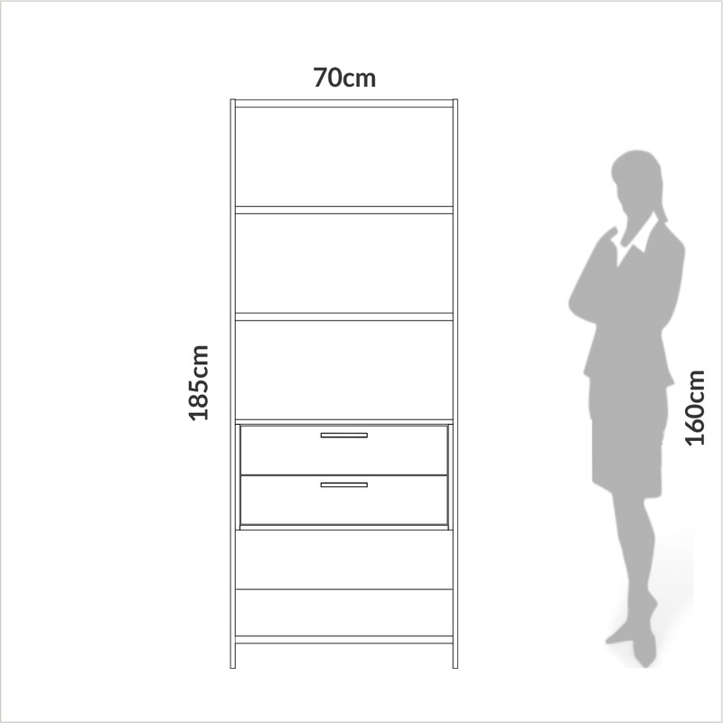 Estante para Livros 2 Gavetas Industrial E91 Wj Off White/Freijó - Dalla Costa