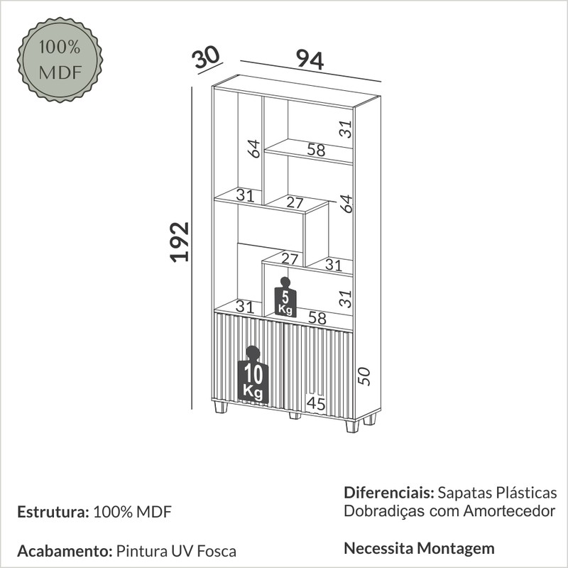 Peso Suportado nas Prateleiras 5 Kg