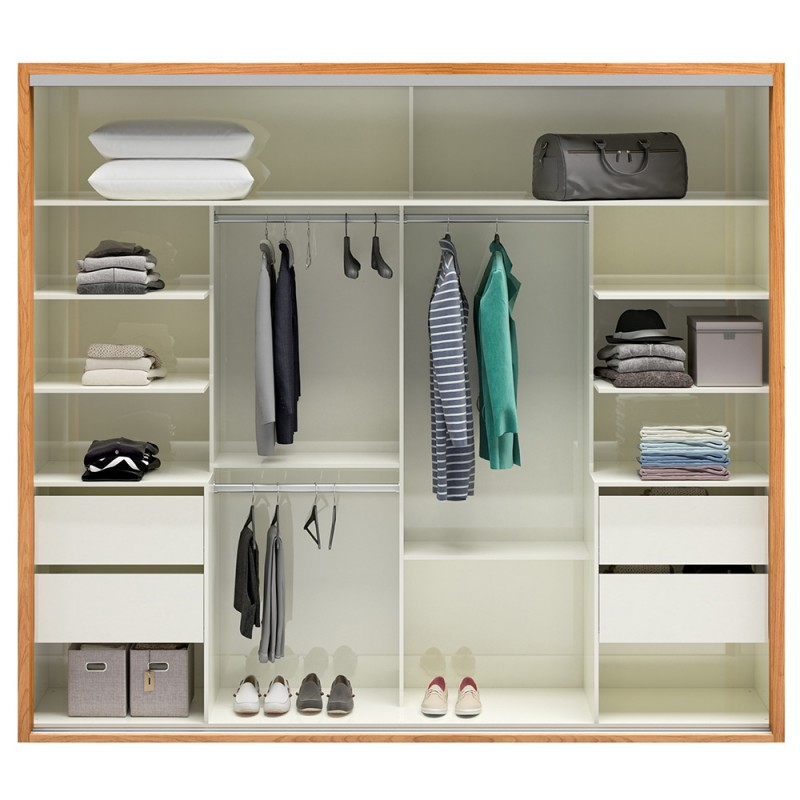 Com 2 portas de correr com corrediças telescópicas com freio e amortecedor, o TW503 entrega o que há de melhor para seu dormitório. Com trilhos, puxadores, cabideiros em alumínio, e um espaço interno planejado com repartimentos bem distribuídos e 4 gaveteiros, este produto perfeito para manter suas roupas e acessórios sempre organizados.