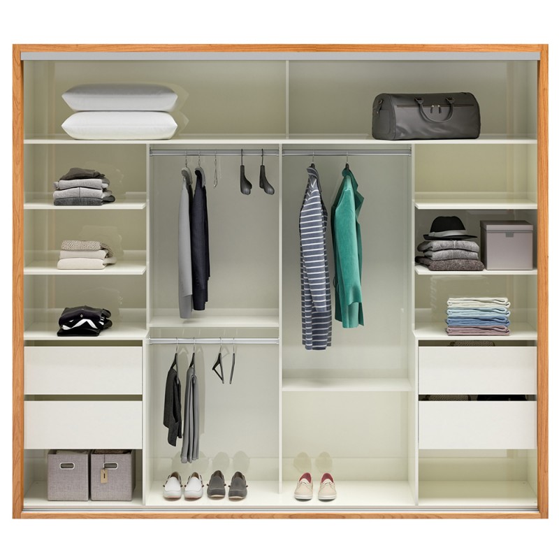 Com 2 portas de correr com corrediças telescópicas com freio e amortecedor, o TW603E entrega o que há de melhor para seu dormitório. Com trilhos, puxadores, cabideiros em alumínio, e um espaço interno planejado com repartimentos bem distribuídos e 2 gaveteiros, este produto é perfeito para manter suas roupas e acessórios sempre organizados.