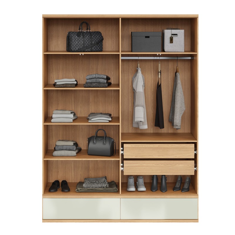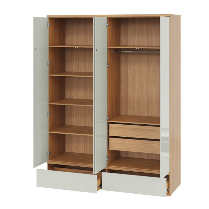 O guarda-roupa W320 combina funcionalidade e design contemporâneo. Com 4 portas de giro e 4 gavetas (2 internas e 2 externas), ele oferece amplo espaço de armazenamento e organização. Seu acabamento em freijó no interior e portas em off white trazem elegância e modernidade ao ambiente. O cabideiro em alumínio garante durabilidade, enquanto o sistema de portas com amortecimento e corrediças telescópicas nas gavetas proporciona suavidade ao manuseio. O fecho por sistema de click (toque) traz praticidade ao abrir e fechar as portas. Todo em 100% MDF, é ideal para quem busca qualidade e sofisticação.