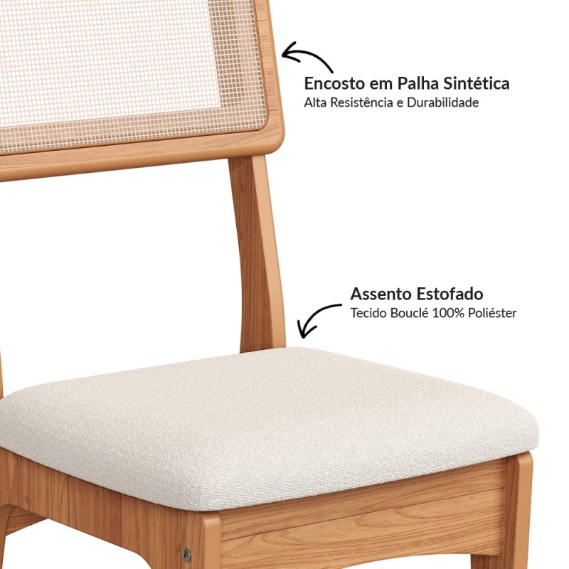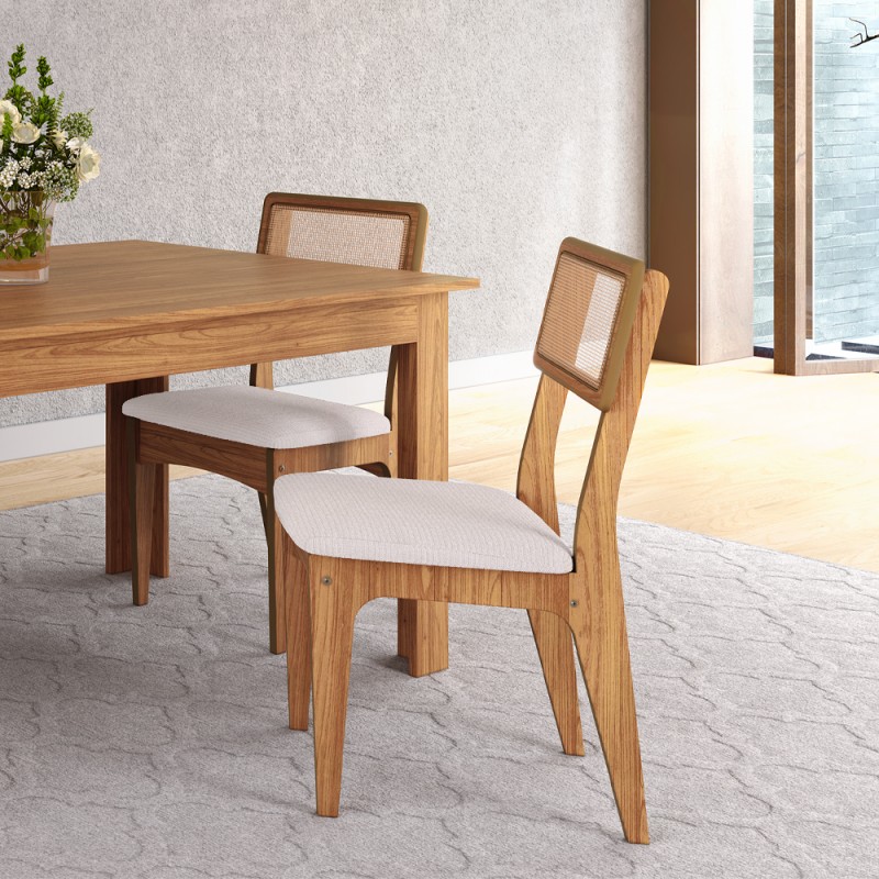 Kit 2 Cadeiras 100% Mdf com Encosto em Palha Sintética - Freijó/Cesare Claro J23