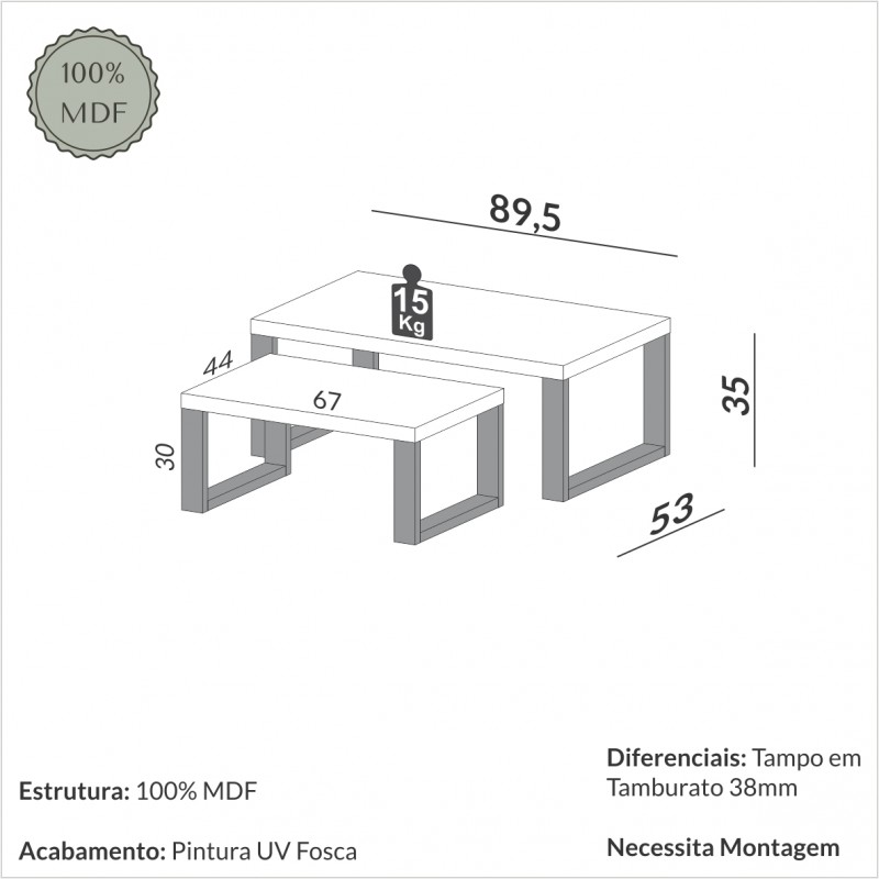 Desenvolvida com design industrial e características únicas, o Conjunto de Mesas de Centro F40 é a combinação perfeita para uma sala de estar moderna e funcional.