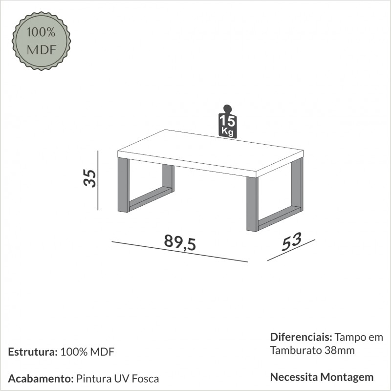 Essa peça é produzida 100% em MDF e possui acabamento de pintura UV com 6 camadas de proteção. A Mesa de Centro F12 tem tampo em tamburato e pés em MDF com ferragens de alta resistência. Este produto se destaca em qualquer ambiente, conferindo um design minimalista para completar a decoração da sua casa.