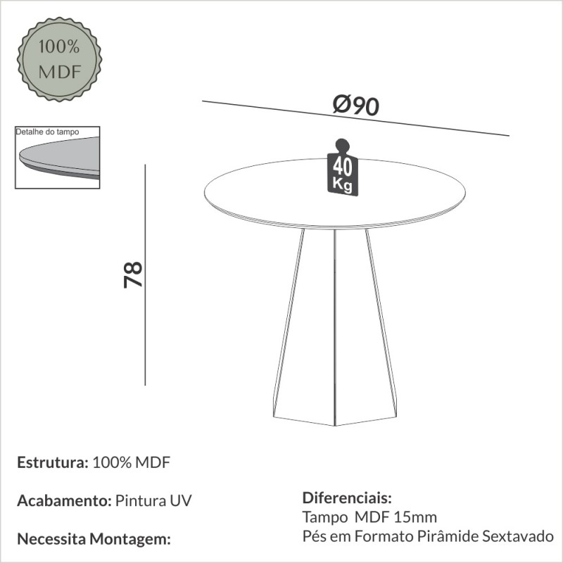 A TM80 acomoda até 4 lugares e é a combinação de um design moderno com delicadeza e qualidade. Sua estrutura 100% MDF garante a mais alta qualidade de acabamento para o produto. A base hexagonal e o tampo arredondado transmitem fluidez e são interessantes para lares com crianças agitadas. A alta qualidade do acabamento faz com que esse produto da Dalla Costa se destaque em qualquer espaço.