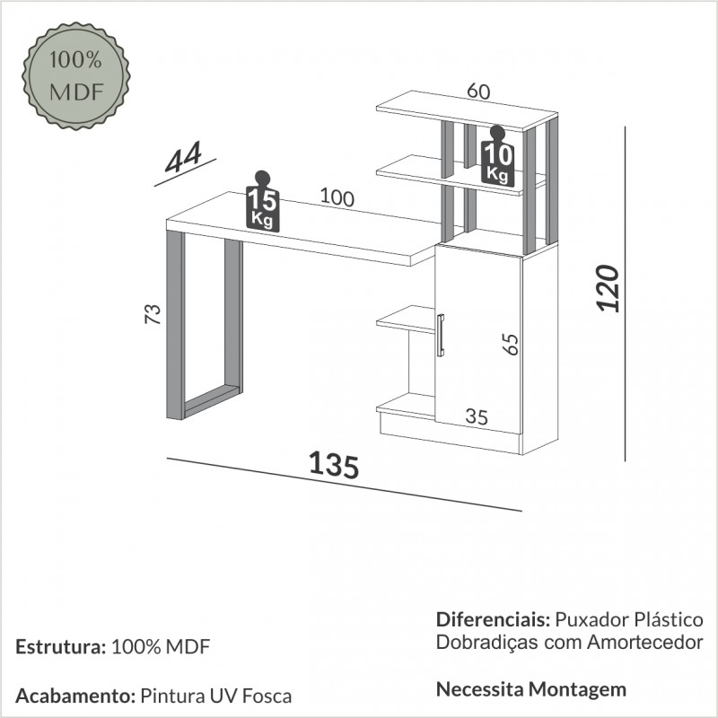 Esse produto 100% MDF possui design industrial proporcionado por ripas fixadas com ferragens de alta resistência. Com pintura de 6 camadas de proteção, a alta qualidade do acabamento faz com que essa mesa auxiliar da Dalla Costa sirva para apoiar impressoras ou outros acessórios no seu escritório.