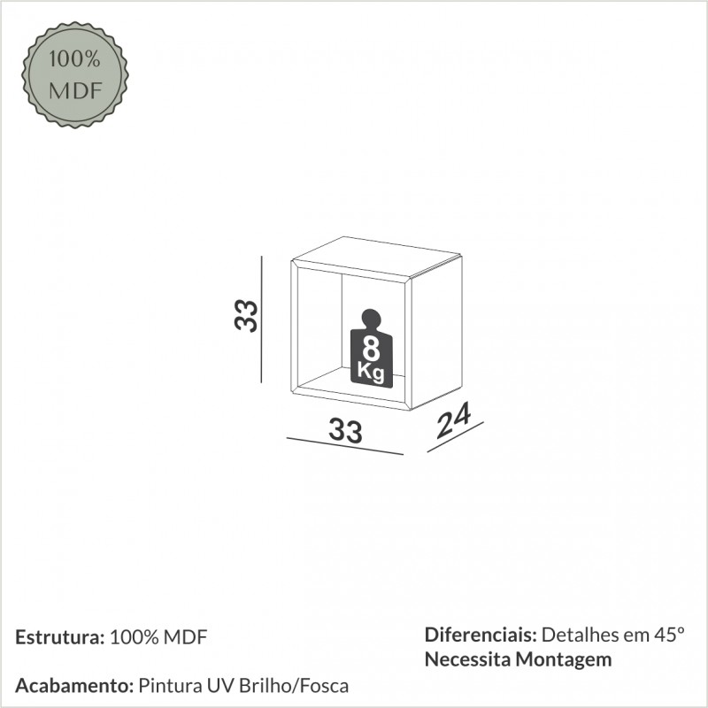 Esse produto 100% MDF possui design minimalista de uma caixa quadrada chanfrada. Com pintura de 6 camadas de proteção, a alta qualidade do acabamento faz com que esse produto se destaque em qualquer espaço.