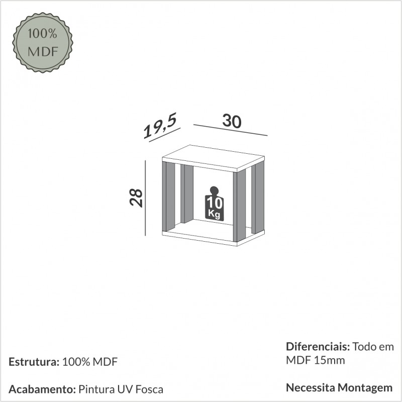 Nicho Retangular 100% Mdf Industrial F27 Off White/Freijó - Dalla Costa