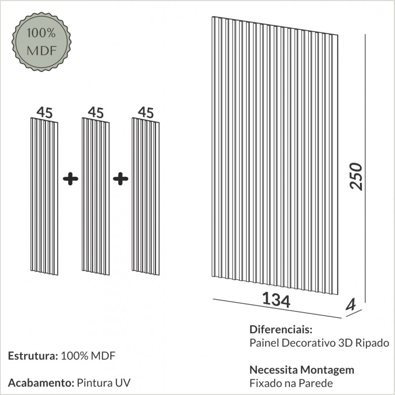 Desenvolvido com um design minimalista e funcional, o Painel Ripado Decorativo PA75 é ideal para compor ambientes.