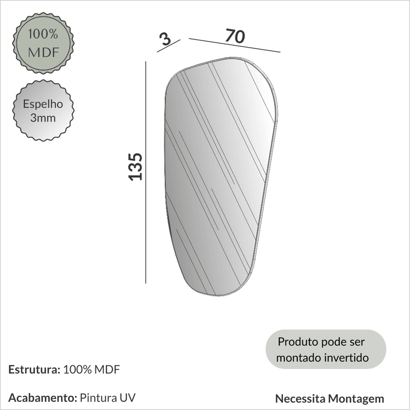 O Painel Espelhado Orgânico da Dalla Costa é uma peça sofisticada que adiciona amplitude e elegância ao ambiente. Com seu formato orgânico, ele traz um design fluido e moderno, perfeito para compor salas, halls de entrada e quartos com um toque de requinte. Seu acabamento em Pintura UV Freijó cria uma sensação de aconchego e sofisticação. O espelho amplia o espaço e reflete a luz, tornando o ambiente mais leve e sofisticado. Produzido em 100% MDF, o painel garante resistência e durabilidade, além de fácil instalação.