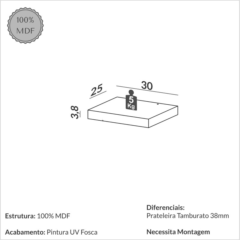 Com 30cm de largura, esta prateleira é prática e versátil, ideal para organizar livros, plantas, objetos decorativos ou acessórios, aproveitando o espaço de forma funcional e sofisticada.
