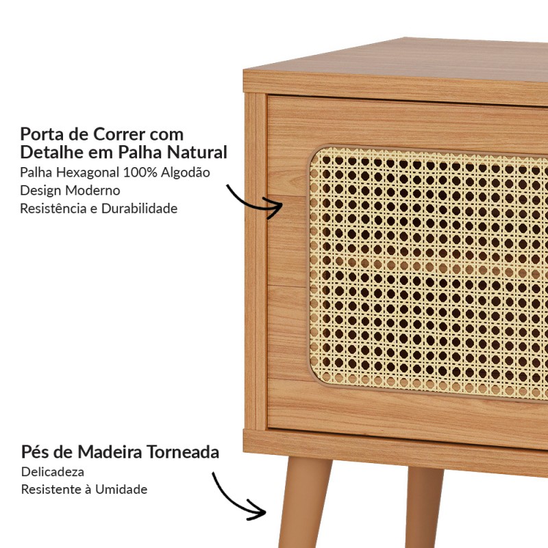 Esse produto 100% MDF possui pés de madeira e uma porta de correr com detalhe em palha natural de algodão, que abre espaços de armazenamento ideais para consoles e decorações. Com pintura de 6 camadas de proteção, a alta qualidade do acabamento faz com que esse produto da Dalla Costa se destaque em qualquer espaço.